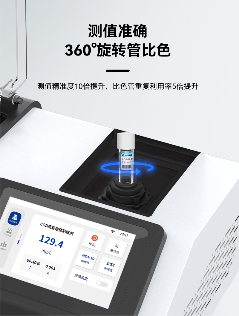 LH-C500搭載了革命性的360°旋轉管比色技術,這一創新不僅極大地降低了比色過程中的干擾因素,更將數據準確性提升至前所未有的高度,相比傳統方法,精度提升十倍有余。這種技術上的飛躍,確保了每一次檢測結果的準確無誤,為水質安全提供了堅實的保障。