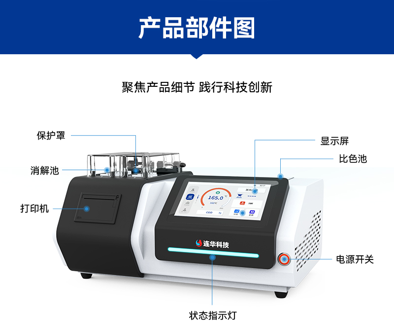 除了以上這些亮點,LH-C500的檢測項目還完全符合國家行業標準,如COD-《HJ/T399-2007》、氨氮-《HJ535-2009》、總磷-《GB11893-89》等,讓用戶在檢測過程中更加放心、安心。同時,產品配套齊全,包括各種液體耗材、密封反應管、冷卻架、管比色架、比色皿座、移液槍、定量器、一機打印紙等,讓用戶在使用過程中更加省心、便捷。