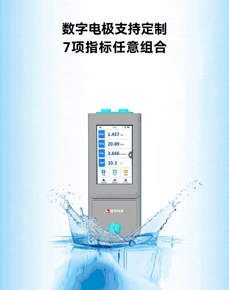 1、手持式迷你主機,支持pH、溶解氧、電導率、ORP、濁度、葉綠素、藍綠藻7項指標快速檢測,滿足各領域水質檢測需求;